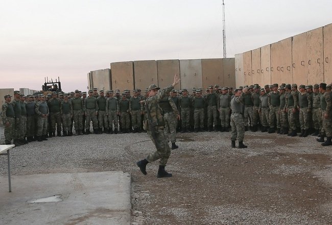 "Öncelikle sizleri tebrik ediyorum. Emrinizdeki ast, üst kardeşlerimle beraber vermiş olduğunuz bu eğitimin, sürecin çok daha başarılı bir şekilde devamı temennimizdir. Şu anda tüm Başika kampındaki askerimize Türkiye'den şahsım ve milletim adına en kalbi duygularla şükranlarımı bildiriyorum. Sizlerin orada vermiş olduğu bu eğitim, gerek peşmerge gerekse diğer Musul'daki kardeşlerimiz olsun bölgenin barışı için, bölgedeki gelişmelere olumlu katkılar noktasında çok büyük faydası olacaktır.