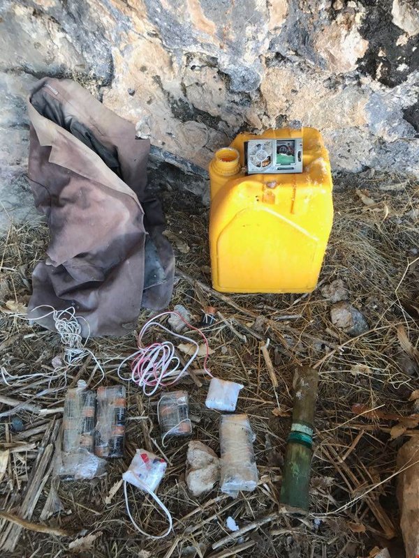 Hakkari'de güvenlik güçlerinin düzenlediği operasyonda bir mağarada, PKK'lı teröristlere ait el yapımı patlayıcı yapımında kullanılan malzemeler ele geçirildi.