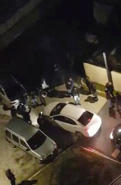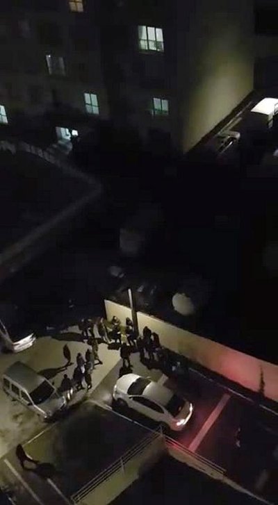 İstanbul Esneyurt'ta lüks bir sitede yapılan operasyona yakalanan zanlının evden çıkarılması anı sitede oturan bir vatandaşın cep telefonu kamerasına yansıdı.