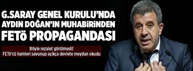Galatasaray’ın bugün düzenlenen mali genel kurulunda hakkında tutuklama kararı bulunan firari FETÖ’cü Hakan Şükür ve Arif Erdem’i savunup devleti suçlayan Doğan Medya'nın FETÖ'cü muhabiri Kadir Çetinçalı’nın 3 yıl önce de Cumhurbaşkanı Erdoğan’a alçakça küfür ettiği ortaya çıktı.