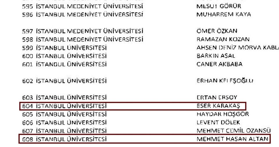 Olağanüstü Hal kapsamında yayınlanan 675 sayılı KHK ile Mehmet Altan ve Eser Karakaş İstanbul Üniversitesindeki görevlerinden atıldı.