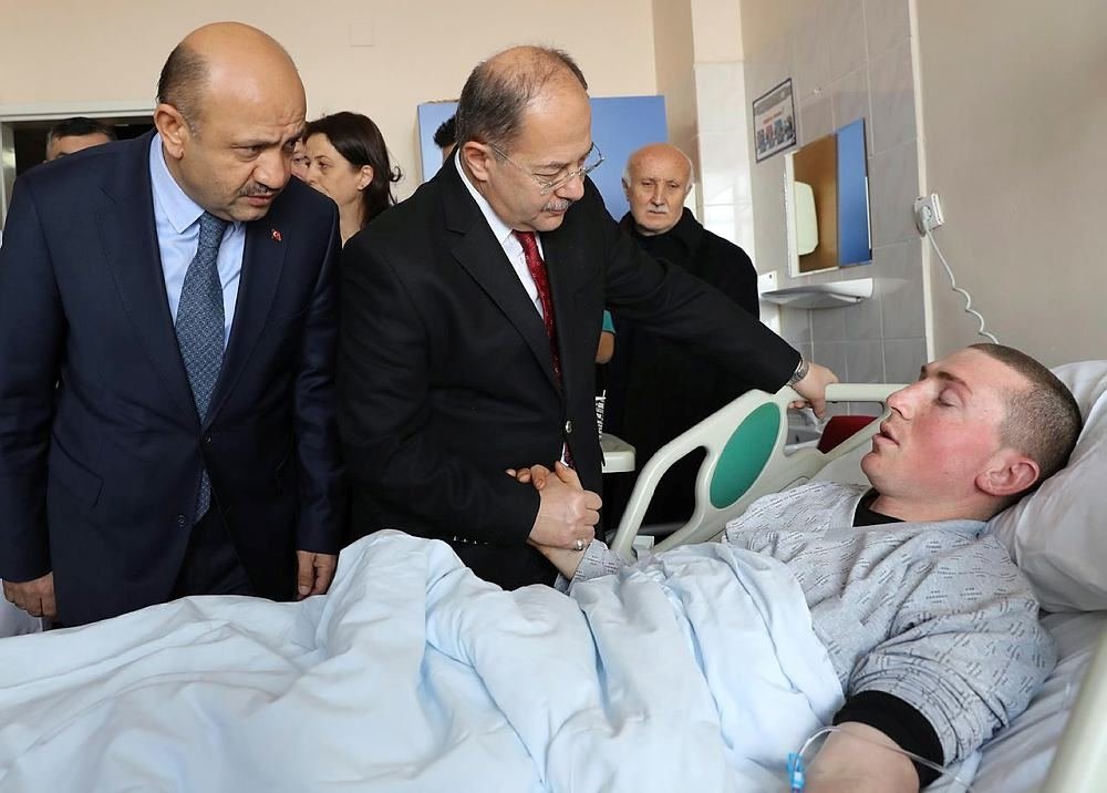 Genel travma, kafa ve bacak travması ve yanık nedeniyle yaralanan askerleri dün gece 11'inci Cumhurbaşkanı Abdullah Gül, İçişleri Bakanı Süleyman Soylu, Sağlık Bakanı Recep Akdağ, Milli Savunma Bakanı Fikri Işık ve Çevre ve Şehircilik Bakanı Mehmet Özhaseki, Kayseri AK Parti, CHP ve MHP yeni ve eski milletvekilleriyle bu sabah Genelkurmay Başkanı Hulusi Akar ile Kara Kuvvetleri Komutanı Orgeneral Zeki Çolak ziyaret ederek, moral verdi. Yaralı askerlerin aileleri de hastane yönetiminin verdiği izinle servislerde yatan çocuklarını gördü.