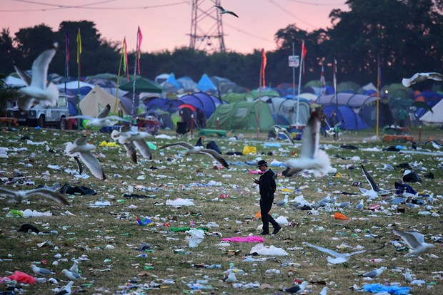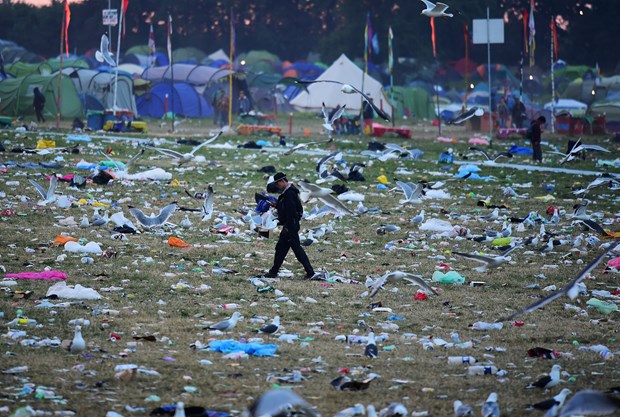 İngiltere'de dünyanın en büyük açık hava festivali olan Glastonbury Festivali sona erdi. Festivalin ardından tonlarca çöp yığını kaldı.