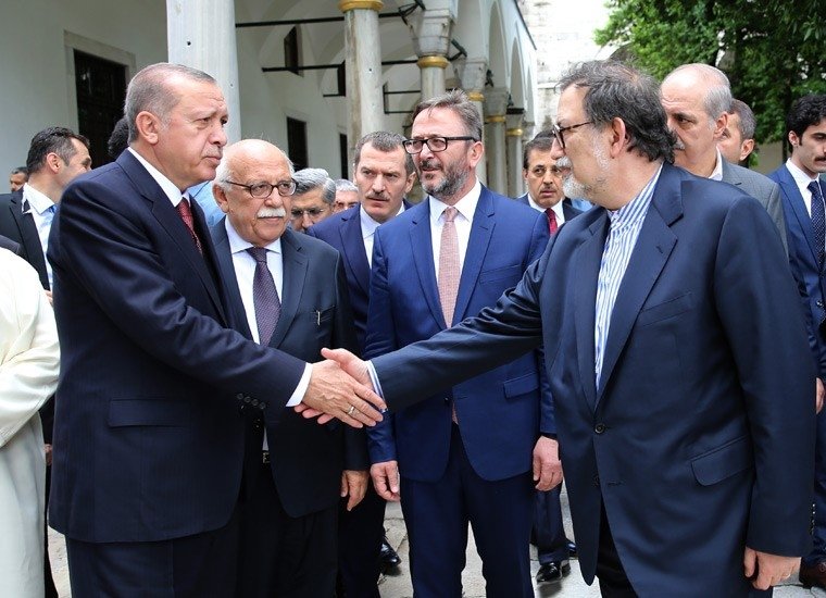 Cumhurbaşkanı Recep Tayyip Erdoğan, Sultanahmet Camii'nde kıldığı cuma namazının ardından Topkapı Sarayı'na geldi.