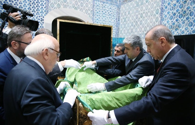 Cumhurbaşkanı Recep Tayyip Erdoğan, Topkapı Sarayı'nda Hırka-ı Saadet'i ziyaret ederek Destimal Töreni'ne katıldı.HIRKA-I SAADET ZİYARET ETTİ
