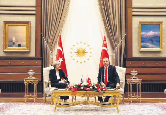 Cumhurbaşkanı Recep Tayyip Erdoğan Türkiye'ye resmi ziyaret gerçekleştiren İngiltere Başbakanı Theresa May'i Cumhurbaşkanlığı Külliyesi'nde kabul etti. Başbaşa ve heyetler arası gerçekleşen görüşmelerin ardından Erdoğan ve May ortak basın toplantısı düzenledi. Cumhurbaşkanı Erdoğan şunları söyledi: