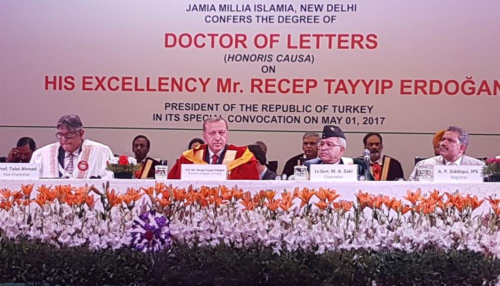 Cumhurbaşkanı Recep Tayyip Erdoğan, Hindistan'da Jamia Millia İslamia Üniversitesince kendisine fahri doktora tevdi edilmesi dolayısıyla düzenlenen törende bir konuşma yaptı.