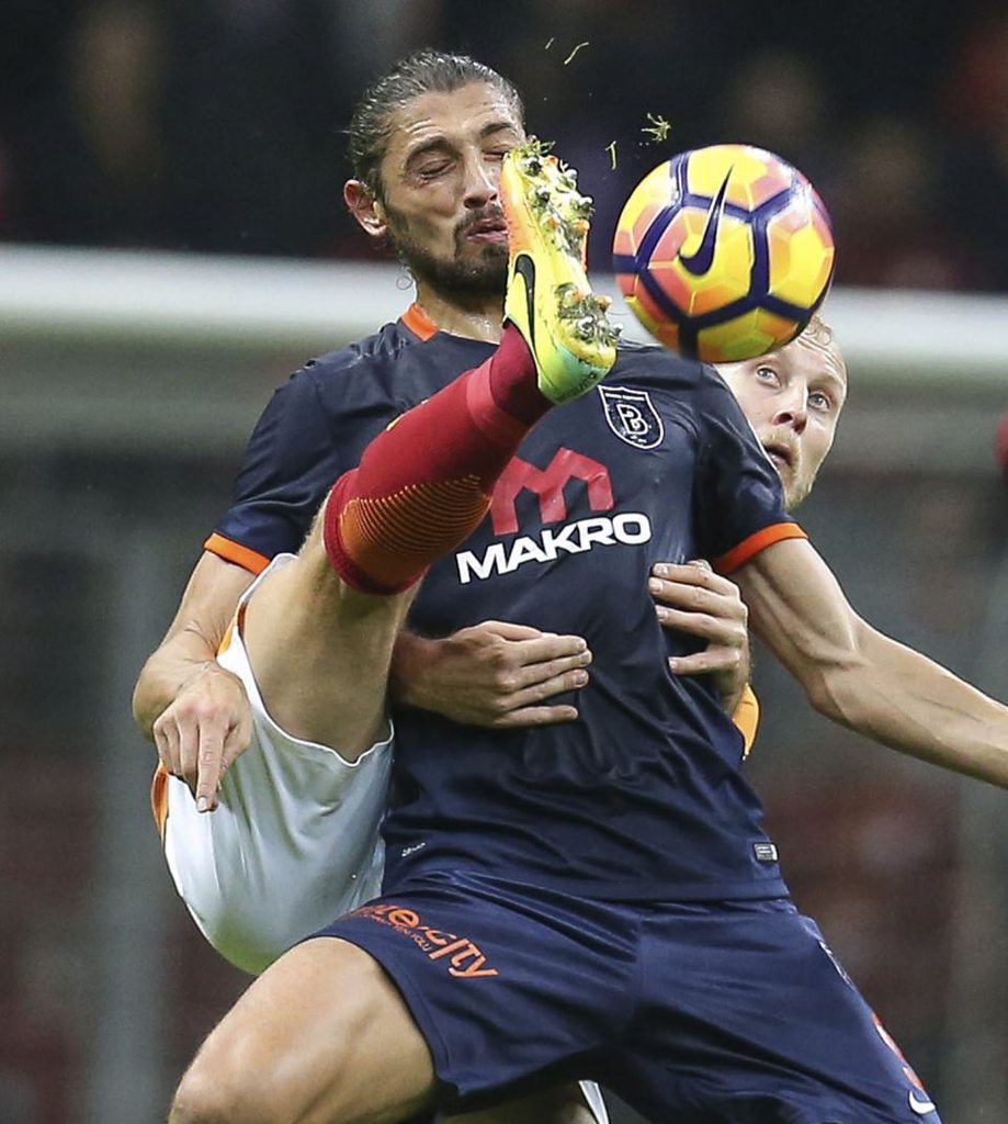 Spor Toto Süper Lig'de 10. haftanın açılış maçında Galatasaray ile Medipol Başakşehir, Türk Telekom Arena'da karşılaştı. Bir pozisyonda Galatasaraylı oyuncu Semih Kaya (26) ile Medipol Başakşehirli futbolcu Mehmet Batdal (9) mücadele etti.