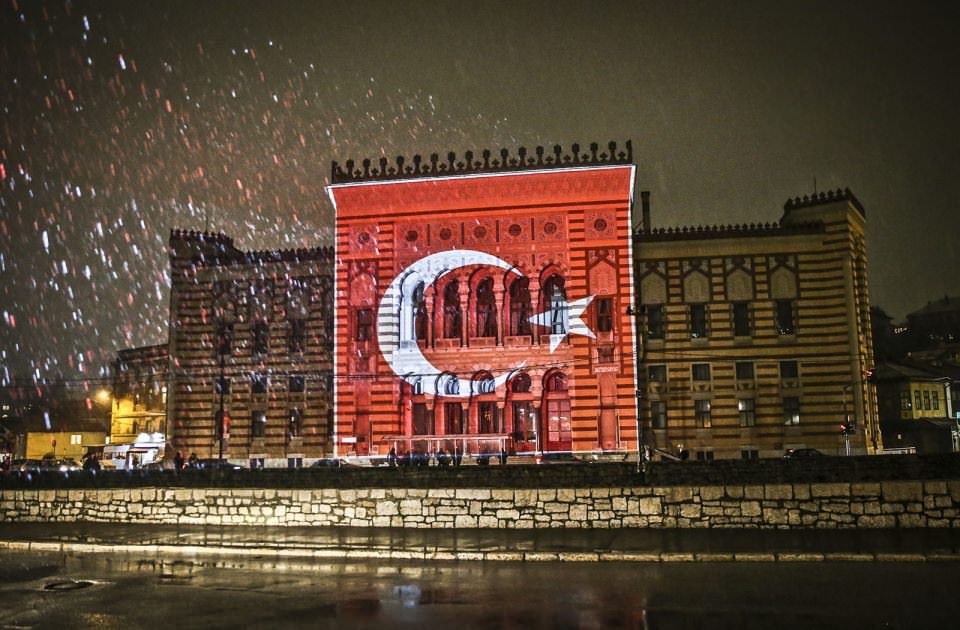 Vijecnica Kütüphanesi'ne Türk Bayrağı