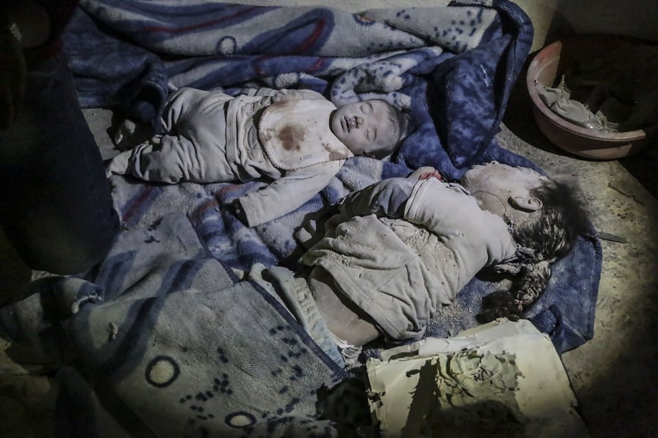 Rus uçaklarının Halep'te muhaliflerin kontrolündeki Kantrancı mahallesinde yerleşim yerine düzenlediği hava saldırısında 10 kişi yaşamını yitirdi. Saldırı sonrası yapılan enkaz çalışması sırasında 3 aylık Hamza Abdullah (sol) ve 6 yaşındaki kız kardeşi Hamsa Abdullah'ın (sağ) cansız bedenlerine ulaşıldı.