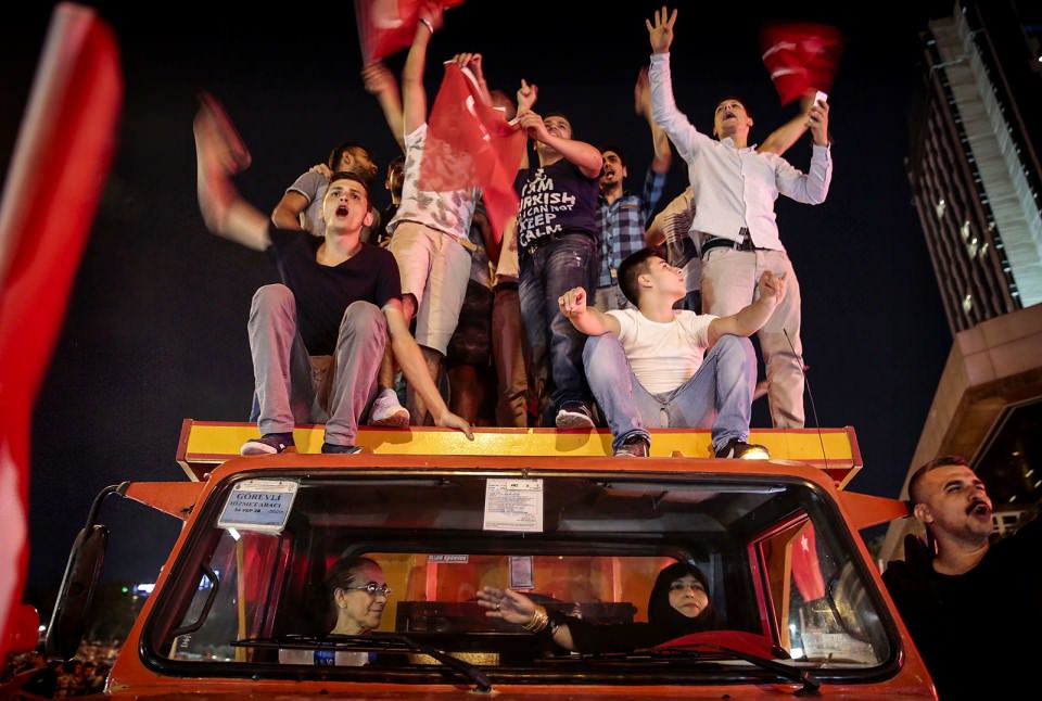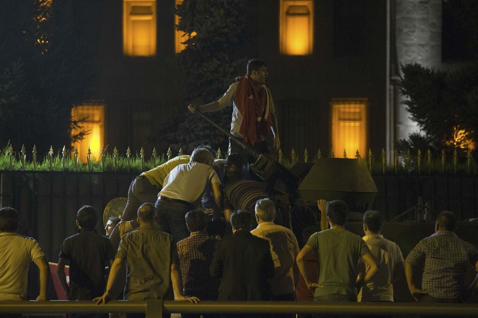 Fetullahçı Terör Örgütü'nün (FETÖ) darbe girişimine karşı vatandaşlar, Genelkurmay Başkanlığı önüne gelerek askeri araçları engelledi.