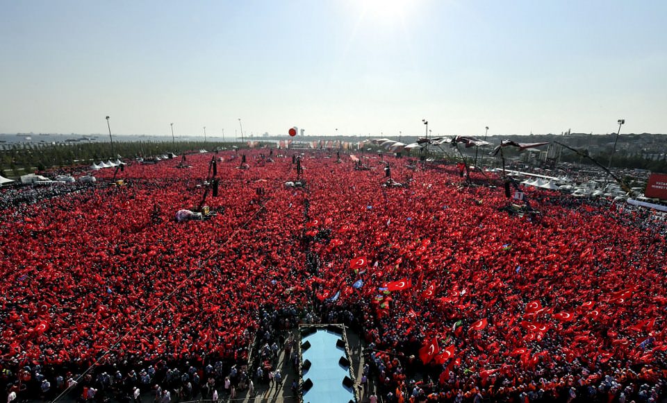 Cumhurbaşkanlığı himayesinde, İstanbul Valiliği ve İstanbul Büyükşehir Belediyesi desteğiyle düzenlenen "Demokrasi ve Şehitler Mitingi", Yenikapı Miting Alanı'nda gerçekleştirildi.