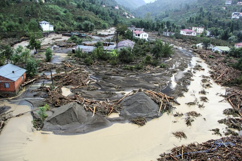 Giresun'un Eynesil ilçesinde şiddetli yağış, su baskınları ve heyelanlara neden oldu.