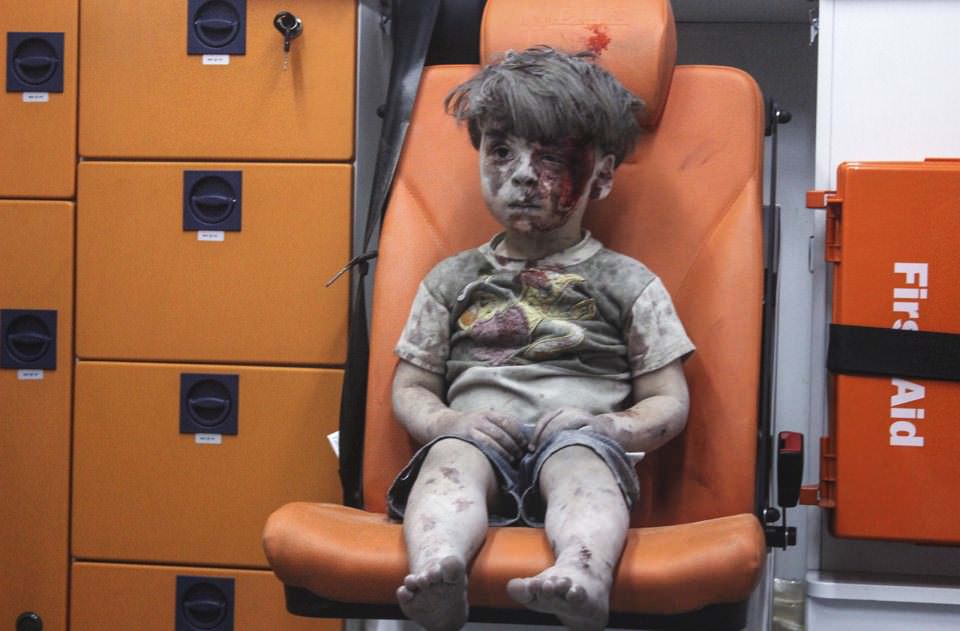 Suriye'de rejim ya da Rus uçakları tarafından Halep'in El Katerji mahallesindeki sivil yerleşim yerine düzenlenen saldırıda 5 yaşındaki Ümran Daknes yaralandı. Yıkılan binanın enkazından yaralı olarak kurtarılan Daknes, sivil savunma ekipleri tarafından bindirildiği ambulansta sahra hastanesine götürülmek üzere bekledi.