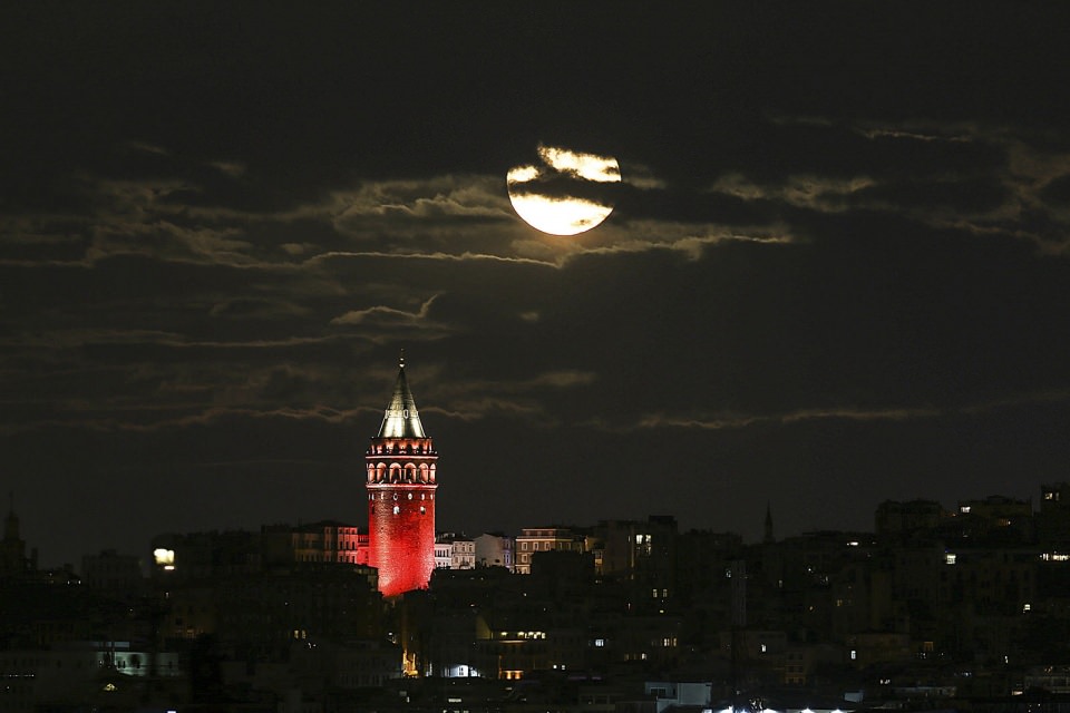 21'inci yüzyılın en büyük Süper Ay'ı, İstanbul'da Galata Kulesi ile birlikte izlendi.