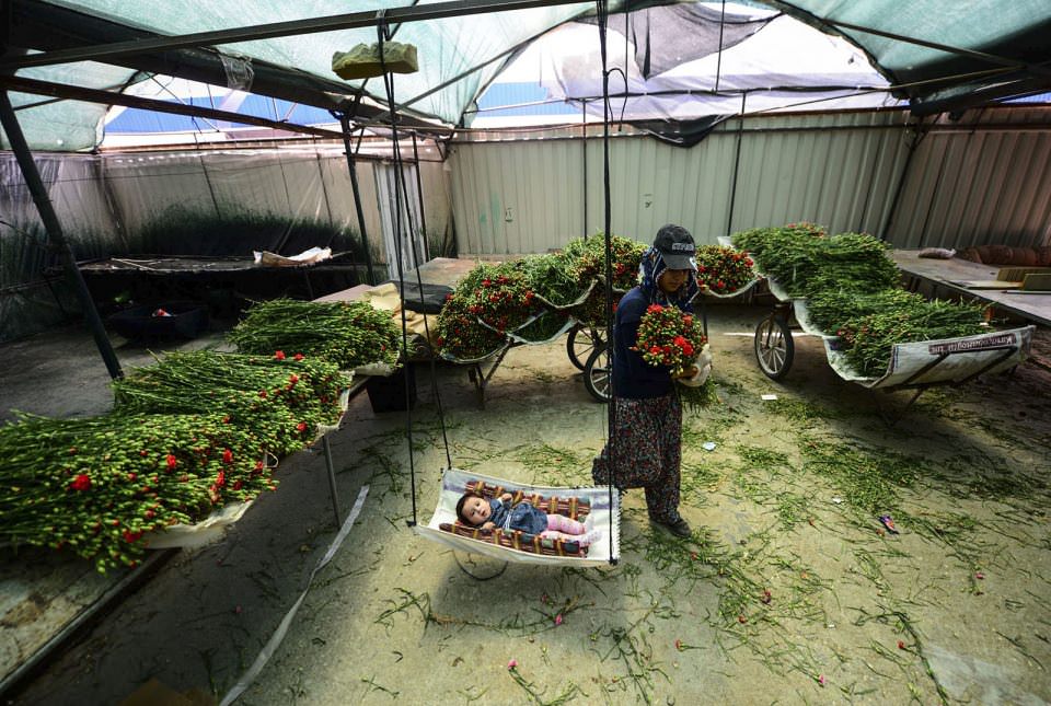 Anneler Günü öncesinde Antalya'daki çiçek seralarında ve depolarında büyük bir yoğunluk yaşandı. Bir yandan çocuklarının ihtiyaçlarını karşılayan, bir yandan da dünya annelerine verilecek çiçekleri özenle hazırlayan kadınlar, hiç tanımadıkları hemcinslerinin yüzünü güldürecek çiçekleri hazırladı. Tokat'tan Antalya'ya eşi Murat Demir ile gelerek 8