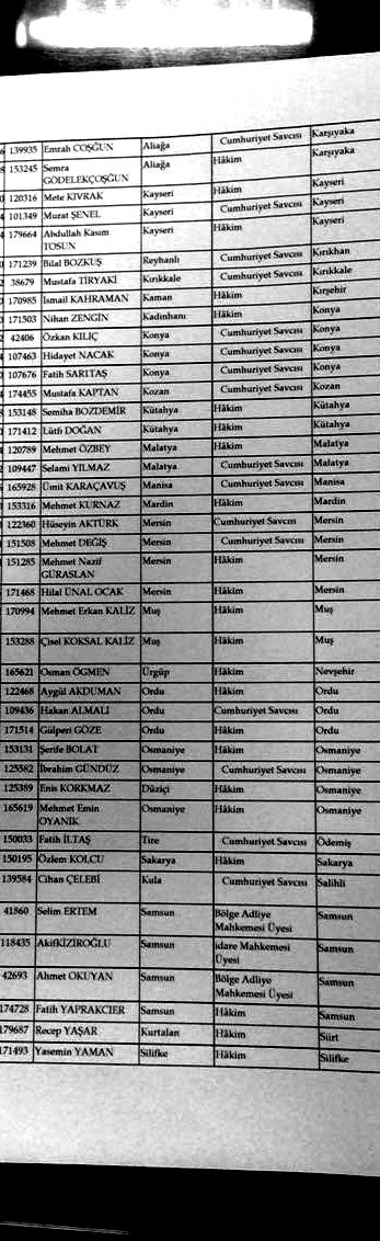 İŞTE AÇIĞA ALINAN HAKİM VE SAVCILARIN LİSTELERİ;