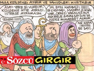 Gırgır Dergisi'nin son sayısının 10. Sayfasında "Musa Kızıldenizi ayırır ve Yahudileri kurtarır" ifadelerinin yer aldığı çirkin bir karikatür yer almıştı. Sözcü Grubu ise bu sabah yaptığı açıklamada dergiyi kapattığını duyurdu. Yazılı açıklamada "Gırgır dergisinin son sayısında yayınlanan hoş olmayan karikatür nedeniyle yayıncı şirket Gırgır dergisinin kapatılmasına ve dergide çalışanların tamamının işten çıkarılmasına karar vermiştir" denildi.