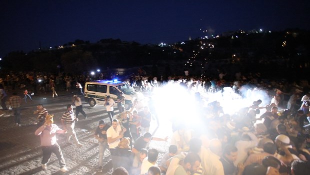 İsrail polisi biber gazı ve plastik mermiyle müdahale etti.
