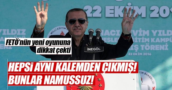 jDarbecilerin şimdi de mağduriyet istismarına bel bağladığının altını çizen Erdoğan, "Bak o katillerin içerisinden 39 tane ölen var. Ama benim 241 şehidim var. 2 bin 194 gazim var. Birileri diyor ki; bunlara biraz zulmediliyor. Ne zulmü be? Her şey adaletle götürülüyor. Hatalar varsa, yanlışlar varsa, bunları da devletimiz her an düzeltmeye hazır. Ama adalete verdikleri hesap yetmeyecek. Bu ihanet çetesinin mensuplarının bütün ömürleri millete hesap vermekle geçecek. Bunu da biliniz. Açık konuşuyorum, ben şahsıma yönelik her türlü saldırı, ihaneti, her türlü hakareti affedebilirim. Milletime, ülkeme yönelik hiçbir ihaneti şahsen affetme, görmezden gelme, üstünü örtme hakkım yoktur. FETÖ millete ihanet etmiştir. Ülkeye, kutsallarımıza ihanet etmiştir. FETÖ'yü affedebilir miyiz? Bu örgütün mensuplarını affedebilir miyiz? Bunca hadiseye rağmen bu örgütün içinde kalanları affedebilir miyiz? Bunun için FETÖ ile kökünü kurutana kadar mücadele etmek boynumuzun borcudur. Eline silah almamış olabilir, eline silah alanların hepsi de gücünü onlardan alabilir. Kanser virüsü gibi bunlar. Bu vücudu temizlememiz lazım. Metastaz yapmış. 17-25 Aralık hadisesine kadar bu örgütün gerçek yüzünü görmeyenleri anlayışla karşılamak mümkündür. Ama 17-25 Aralık'tan sonra örgütün içinde kalmaya devam edenler, ne yaptıklarını, niçin yaptıklarını bilerek, bedelini göze alarak bu tercihte bulunmuşlardır. 15 Temmuz'a rağmen samimi pişmanlık ortaya koymayan, bildiklerini anlatmayan ne kadar örgüt mensubu varsa asla masum değildir. Türkiye'de ey FETÖ örgütüne mensup olan veya onlarla bağlantısı olanlar! Eğer sizler gelip bildiklerinizi anlatmayacak olursanız, kusura bakmayın, sizi nerede olursa olsun alır cezaevlerine tıkarız" diye konuştu.