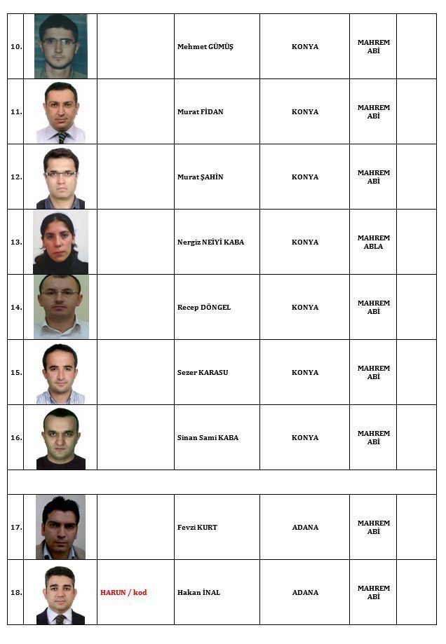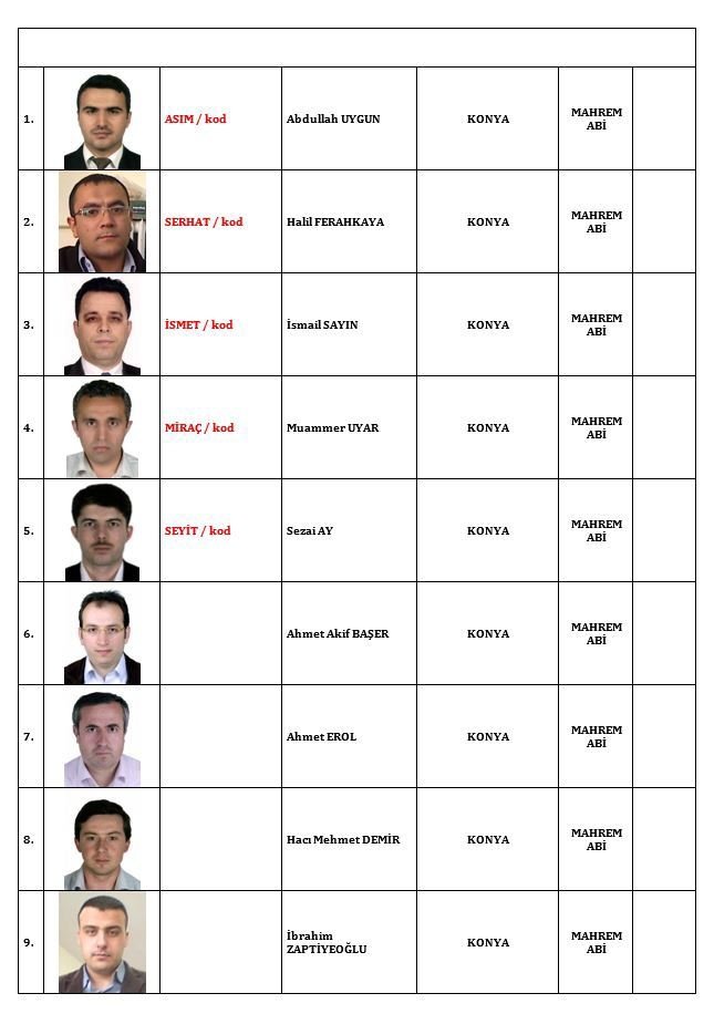 Konya'da FETÖ'nün Türk Silahlı Kuvvetlerindeki yapılanmasına yönelik yürütülen soruşturmada gizli tanıkların verdiği bilgiler doğrultusunda Hava Kuvvetleri Komutanlığına sızan terör örgütü üyesi 180 subay 3 aşamalı operasyonda gözaltına alındı. 109'u itirafçı olan subaylar ortaokul yıllarından bu yana kendileriyle ilgilenen TSK'nın mahrem abilerini deşifre etti. KOM ve İstihbarat Şubesi ekipleri tarafından açık kimlikleri tespit edilen 120 mahrem abinin, birçoğunun kod adı kullandığı, Hava Kuvvetleri Komutanlığında darbe girişimine zemin hazırladığı, subaylara yaptıkları toplantılarla talimatlar verdiği tespit edildi. Birçoğu 15 Temmuz darbe girişiminde aktif rol oynayan Konya'dan 16, İzmir'den 29, Ankara'dan 22 olmak üzere 30 ilde 120 mahrem abi hakkında gözaltı kararı çıkarıldı. 27 mahrem abi gözaltına alındı. 93 mahrem abi ise aranıyor.