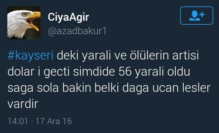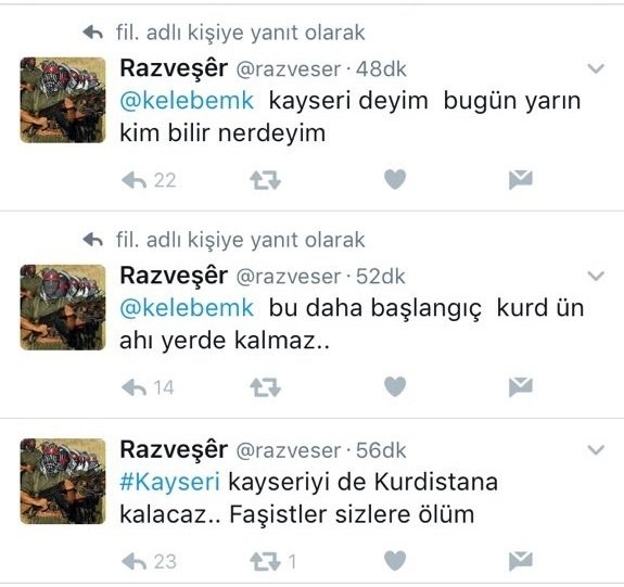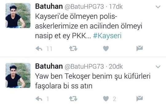 İstanbul Beşiktaş'taki saldırısından hemen sonra paylaştığı provokatif yazısını Kayseri saldırısından hemen sonra da paylaştı.