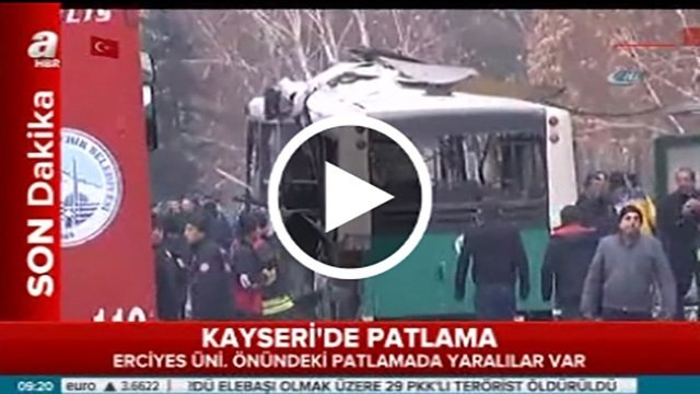 Alınan bilgiye göre, Erciyes Üniversitesi yerleşkesinin Talas istikametindeki giriş kapısı yakınlarında bomba yüklü bir araç, çarşı iznine çıkan askerlerin de içinde bulunduğu halk otobüsünün yanında infilak etti.