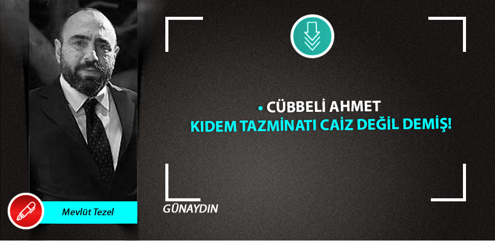 Cübbeli Ahmet Hoca olarak bilinen Ahmet Mahmut Ünlü, Beyaz TV'de katıldığı bir programda kıdem tazminatının caiz olmadığını söyledi. Programda, bir izleyiciden gelen 'İşten çıkarılınca kıdem tazminatı almak caiz midir?' şeklindeki soru üzerine Cübbeli, şu cevabı verdi: "Caiz değil çünkü, kıdem tazminatı hakkı değil, maaşını almış. Kendi çıksa alamıyor, adam çıkarırsa alıyor. Hakkı olsa, kendi çıksa da alması lazım. Demek ki hakkı değil." Maşallah hoca; politika, psikoloji, hukuk, iktisata kadar her konuda kendini uzman sanıyor. Ciddiye alınacak bir açıklama değil ama başta Cübbeli'nin müritleri olmak üzere, ciddiye alacaklar elbette olacaktır.