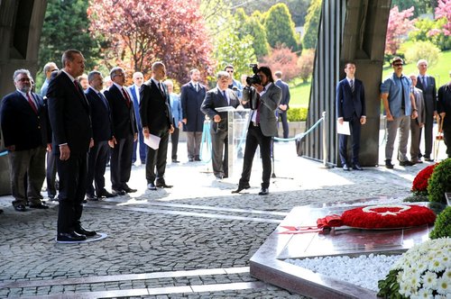 Cumhurbaşkanı Erdoğan, Enerji ve Tabii Kaynaklar Bakanı Berat Albayrak, TBMM başkanı İsmail Kahraman, İstanbul Valisi Vasip Şahin ve Cumhurbaşkanlığı Sözcüsü İbrahim Kalın ile birlikte gittiği anıt mezarda ilk olarak merhum Cumhurbaşkanı Turgut Özal'ın eşi Semra Özal ile bir süre sohbet etti.
