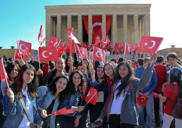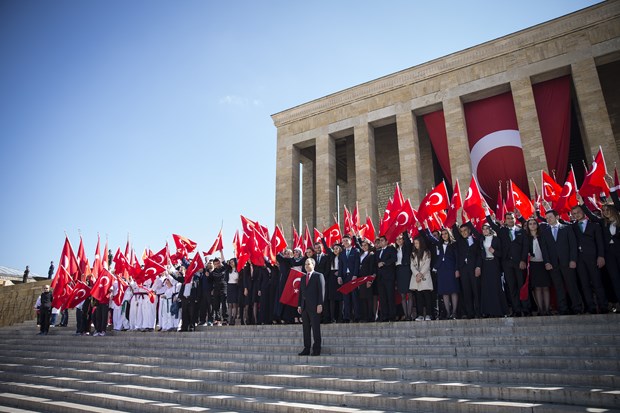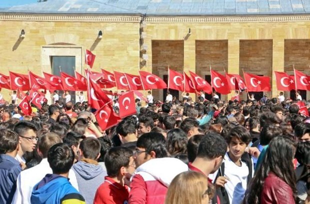 Bakan Kılıç ve beraberindeki heyet, Türk bayrakları taşıyan gençlerle Aslanlı Yol'dan yürüyerek Atatürk'ün mozolesine geldi.