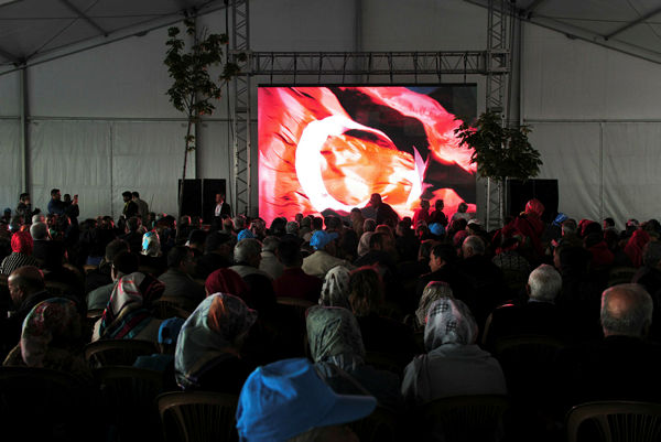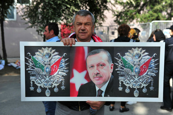 Dev Türk bayrağı asılan salonda, Gazi Mustafa Kemal Atatürk, Cumhurbaşkanı Recep Tayyip Erdoğan ve Başbakan Binali Yıldırım'ın posterleri yer aldı.