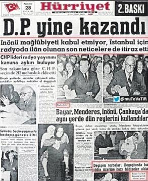 1957 GENEL SEÇİMLERİ: Bir sonraki genel seçim olan 1957'de yine ezici bir üstünlük kuran Demokrat Parti'ye karşı CHP Lideri İsmet İnönü itirazlarda bulunmuştu. Seçim sonucunda Demokrat Parti 424 vekil kazanırken CHP 178 vekili Meclis'e gönderebilmişti. Bu sonuçlar karşısında birçok büyük ilde seçimin tekrarını isteyen CHP'liler o dönem de radyo yayınını kanuna aykırı bulmuşlardı.