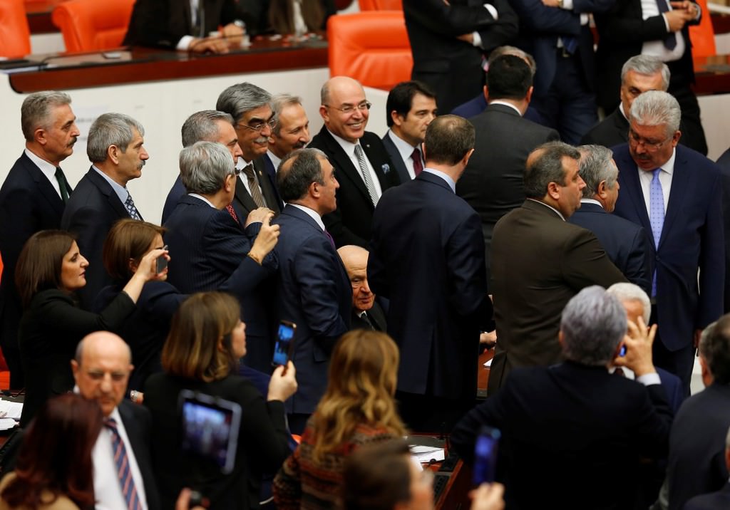 HDP oylamalara katılmazken, sonuçlar CHP'nin neredeyse tam kadro oylamaya katılarak hayır oyu kullandığını gösterdi. Maddelere geçilirken CHP Genel Başkanı Kemal Kılıçdaroğlu ile birlikte 7 milletvekilinin oy kullanmadığı ortaya çıkmıştı. Meclis Adalet Komisyonu Başkanı Ahmet İyimaya, cumhurbaşkanlığı sisteminin bir zaruret olduğunu ifade etti.