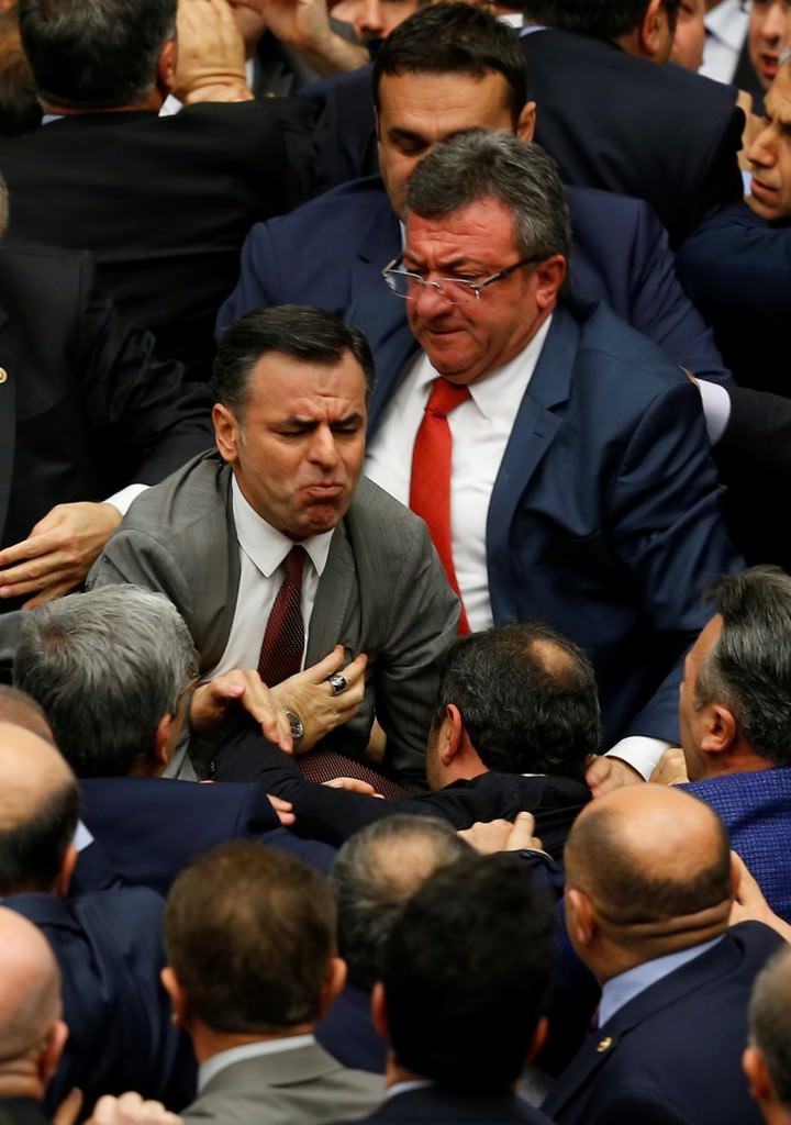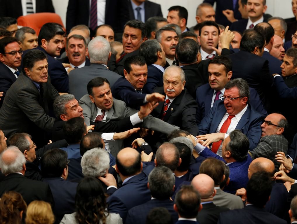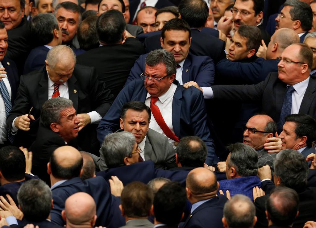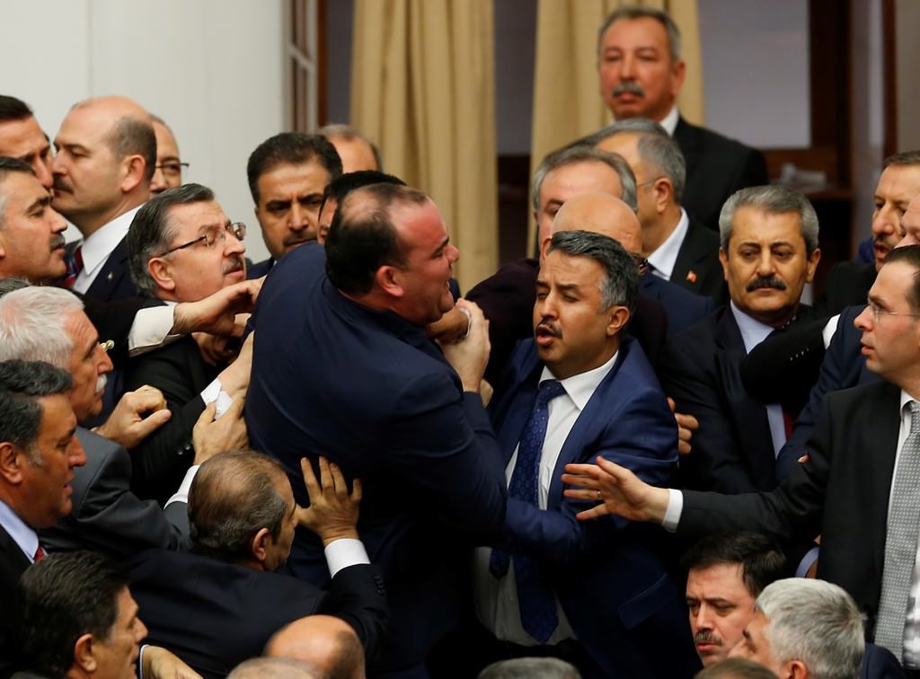 AK Parti milletvekilleri kürsü ile Başkanlık Divanı arasına geçerek, CHP'lileri kürsüden uzaklaştırmaya çalıştı. Bu sırada iki partinin milletvekilleri arasında yumruklaşmaya varan kavga ve itiş kakış yaşandı, bazı milletvekillerinin yaralandığı görüldü. Kavgaya karışan bazı milletvekilleri yere düştü.