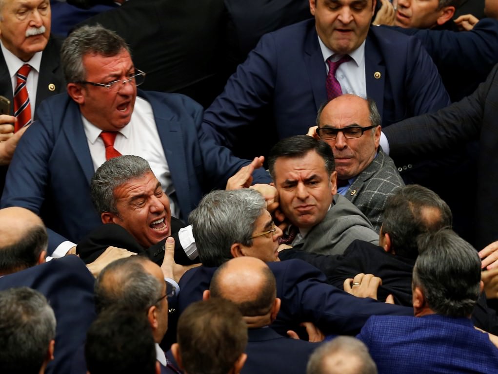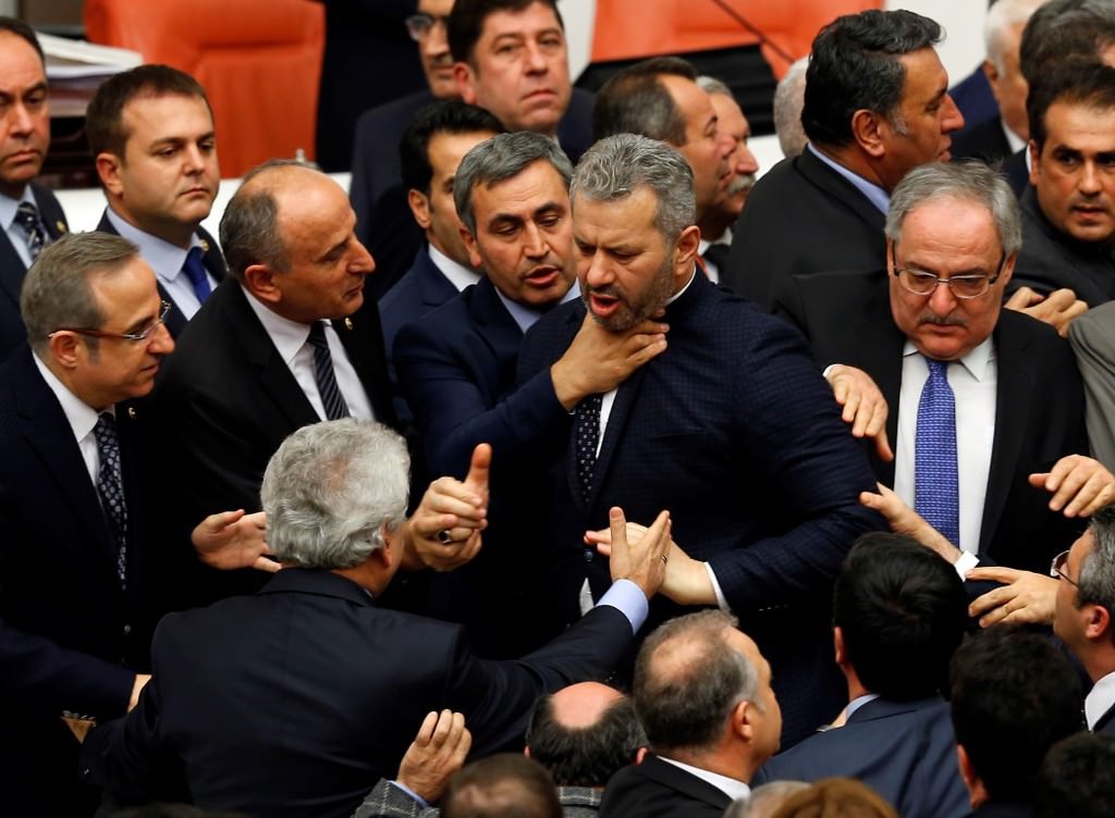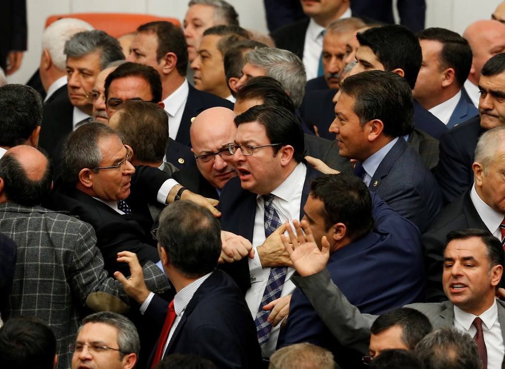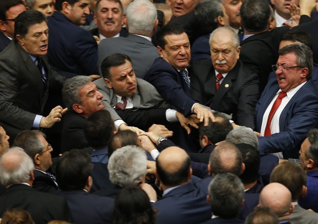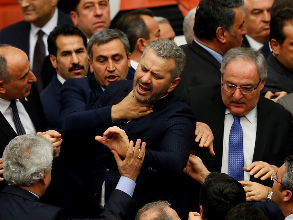 AK Parti milletvekilleri kürsü ile Başkanlık Divanı arasına geçerek, CHP'lileri kürsüden uzaklaştırmaya çalıştı. Bu sırada iki partinin milletvekilleri arasında yumruklaşmaya varan kavga ve itiş kakış yaşandı, bazı milletvekillerinin yaralandığı görüldü. Kavgaya karışan bazı milletvekilleri yere düştü.