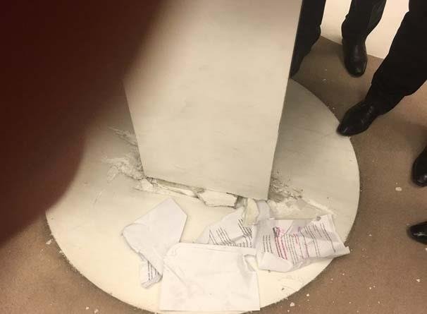 Salonun ortasında bulunan "Atatürk çiçeği" ile stenografların görev yaptığı masa zarar gördü. Oylama zarflarının atıldığı kupaların bulunduğu sehpa da kavga esnasında yerinden kaldırıldı.