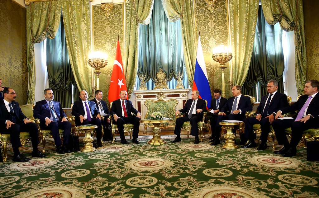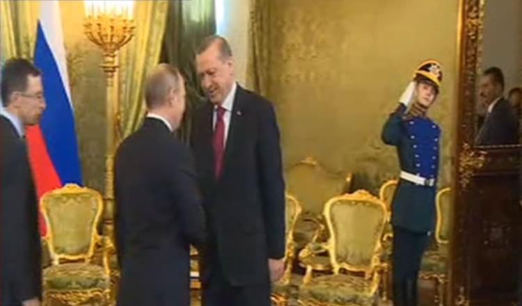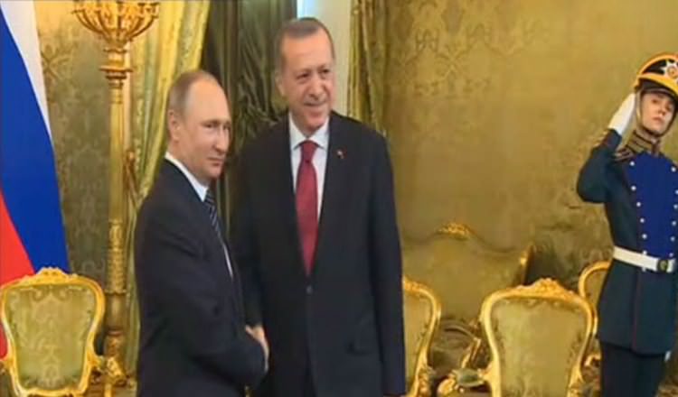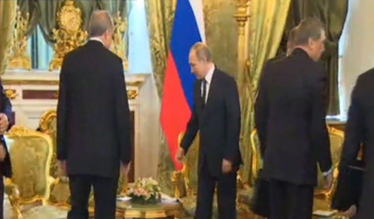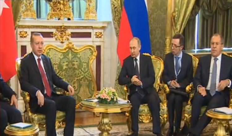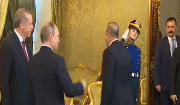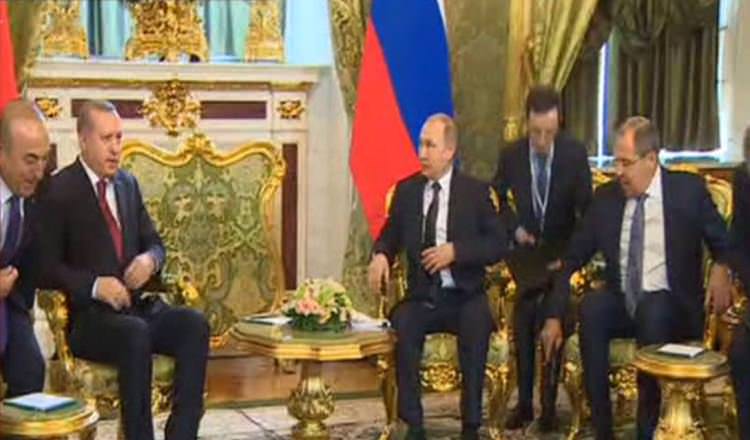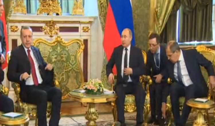 Kameraların karşısına geçen Vladimir Putin, "Bu formatta uzun zaman sonra ilk görüşmemiz. Aradan çok zaman geçtiği halde Rus-Türk ilişkilerinin gelişmesi için çalışıyoruz. Başta Suriye krizi olmak üzere dünyadaki krizlerin çözümü ile ilgili olarak çalışmalarımızı aktif bir şekilde sürdürüyoruz" dedi. Putin, "Askeri ve özel servisler arasında yapıcı görüşme sürüyor" diye konuştu.