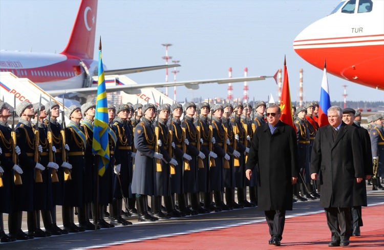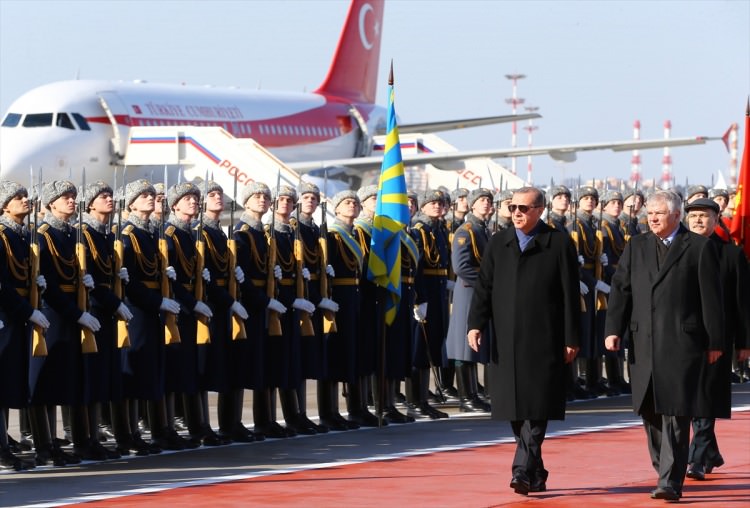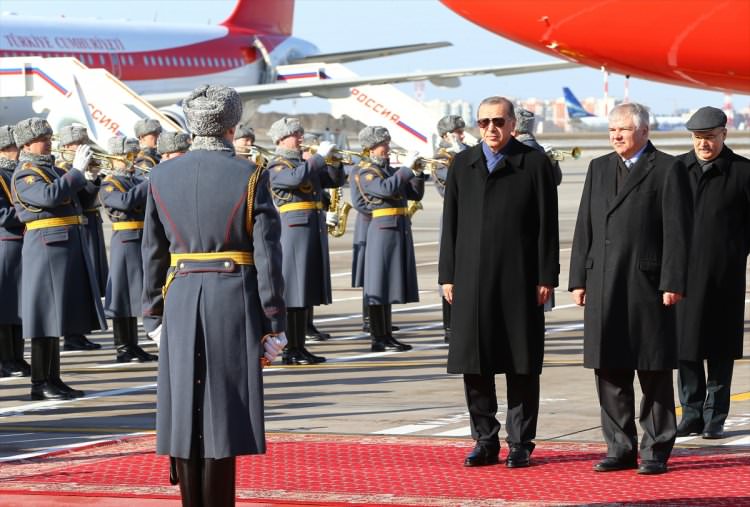 Cumhurbaşkanı Recep Tayyip Erdoğan, özel uçak "TUR" ile saat 13.15'te Rusya'nın başkenti Moskova'ya geldi.