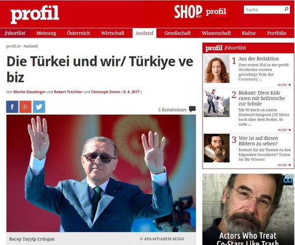 Daha önce Blick, Bild gibi yayın organları Cumhurbaşkanı Recep Tayyip Erdoğan özelinde 'hayır' için propaganda çalışması yaparken bu kervana son olarak Avusturya'da yayın yapan Profil dergisi katıldı.