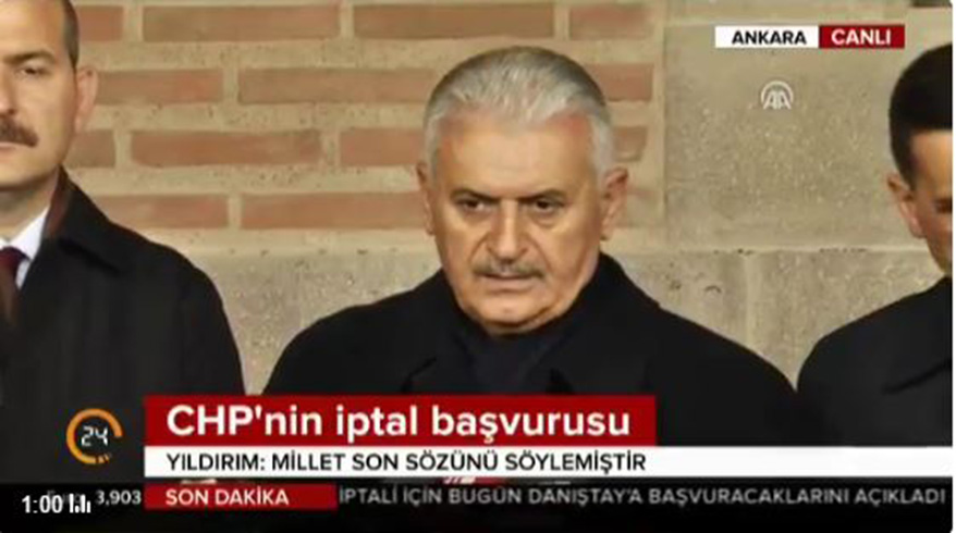Başbakan Binali Yıldırım, CHP'nin referandum sonuçlarının iptaline ilişkin art arda hamlelerde bulunmasıyla ilgili şu açıklamayı yaptı: