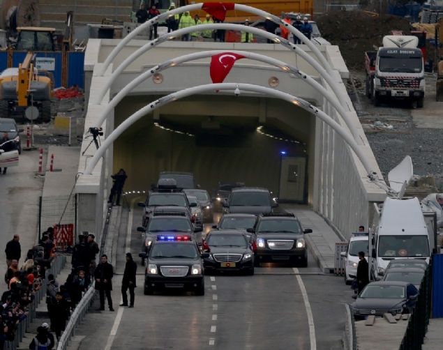 Cumhurbaşkanı Recep Tayyip Erdoğan, Avrasya Tüneli'nin açılış töreninin ardından makam aracına bindi. Avrasya Tüneli'nden ilk geçişi Cumhurbaşkanı Tayyip Erdoğan yaptı.